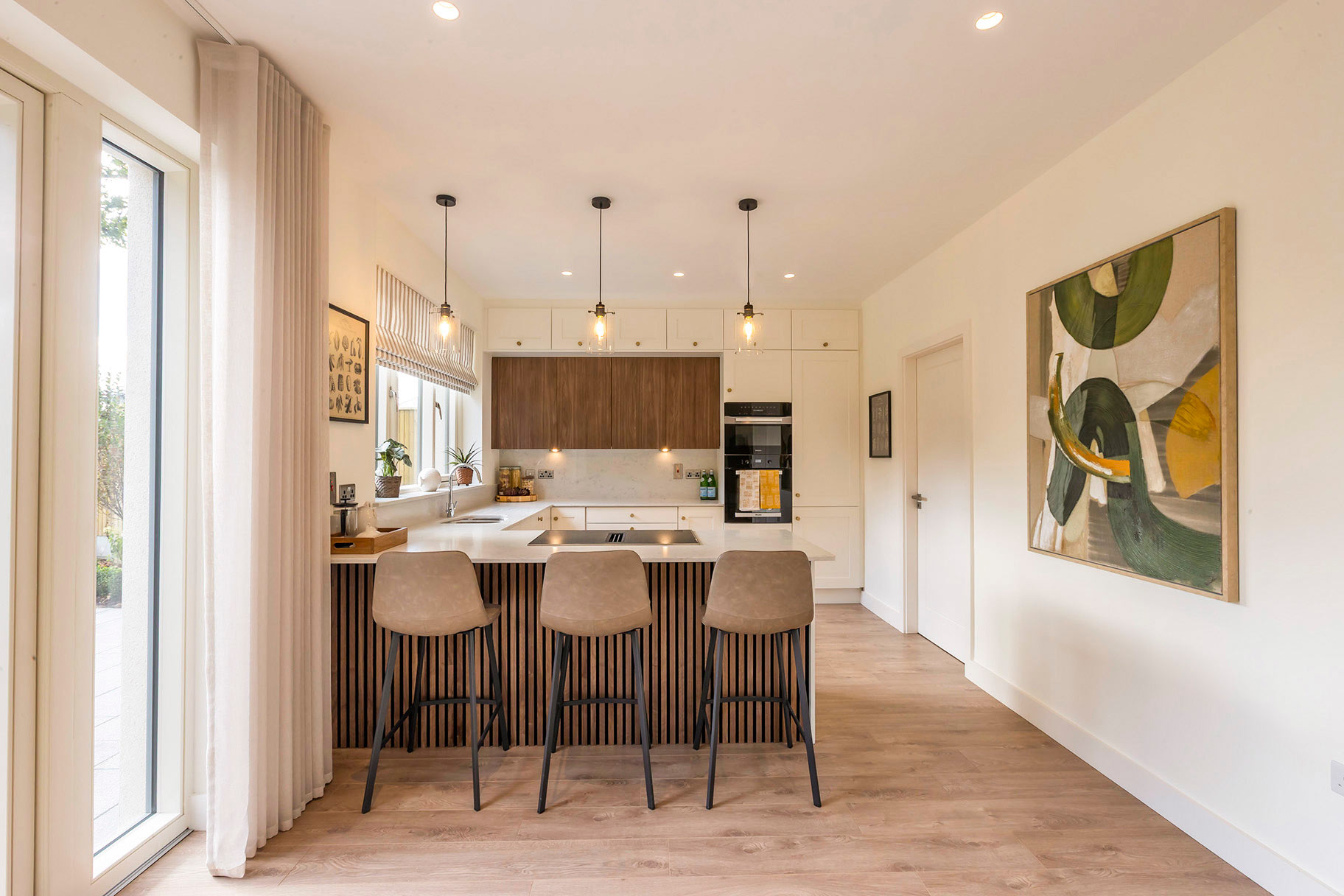Upstairs, bedrooms are large and well laid out, offering excellent storage space with wardrobes fitted by Mountlodge Furniture. Two bedrooms feature private ensuites, while the main bedroom is equipped with both a walk in shower and separate bath - all finished with premium tiling and sanitary ware.