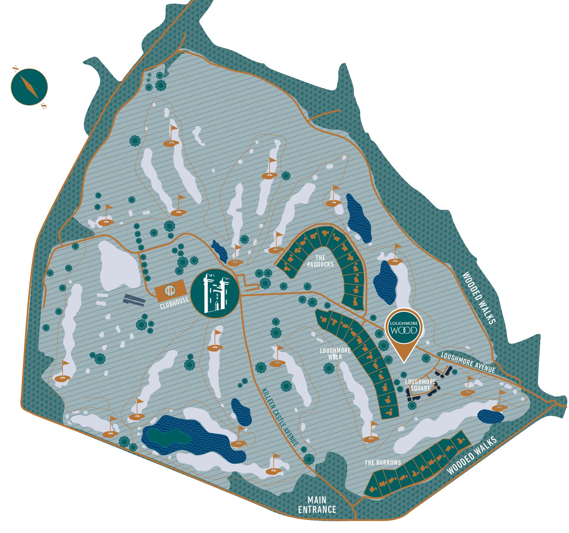 Despite this prime location, residents of Loughmore Wood enjoy a true sense of peace and privacy, surrounded by nature in an unrivaled sylvan setting. These exceptional homes are nestled within mature woodland and bordered by historic stonework, ensuring a tranquil setting. Adding to this sense of security and exclusivity, Loughmore Wood is part of a private, gated community.